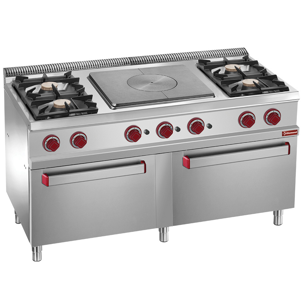 Fornuis 4 Branders, Centrale Doorkookplaat, 2 Gasovens GN 2/1 | G7/T4B2F15