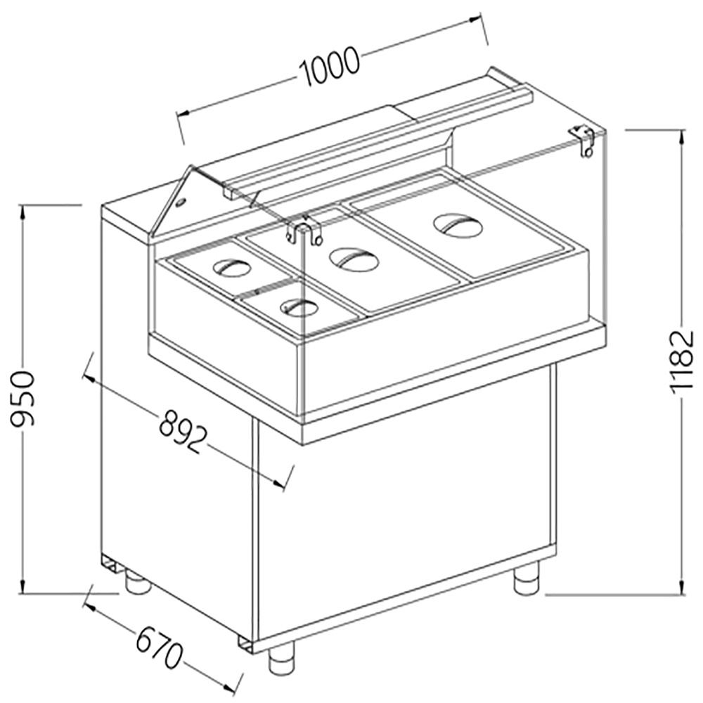 - Gelaste kuip hoogte 240mm (GN-h150 mm), handmatige ontlading.