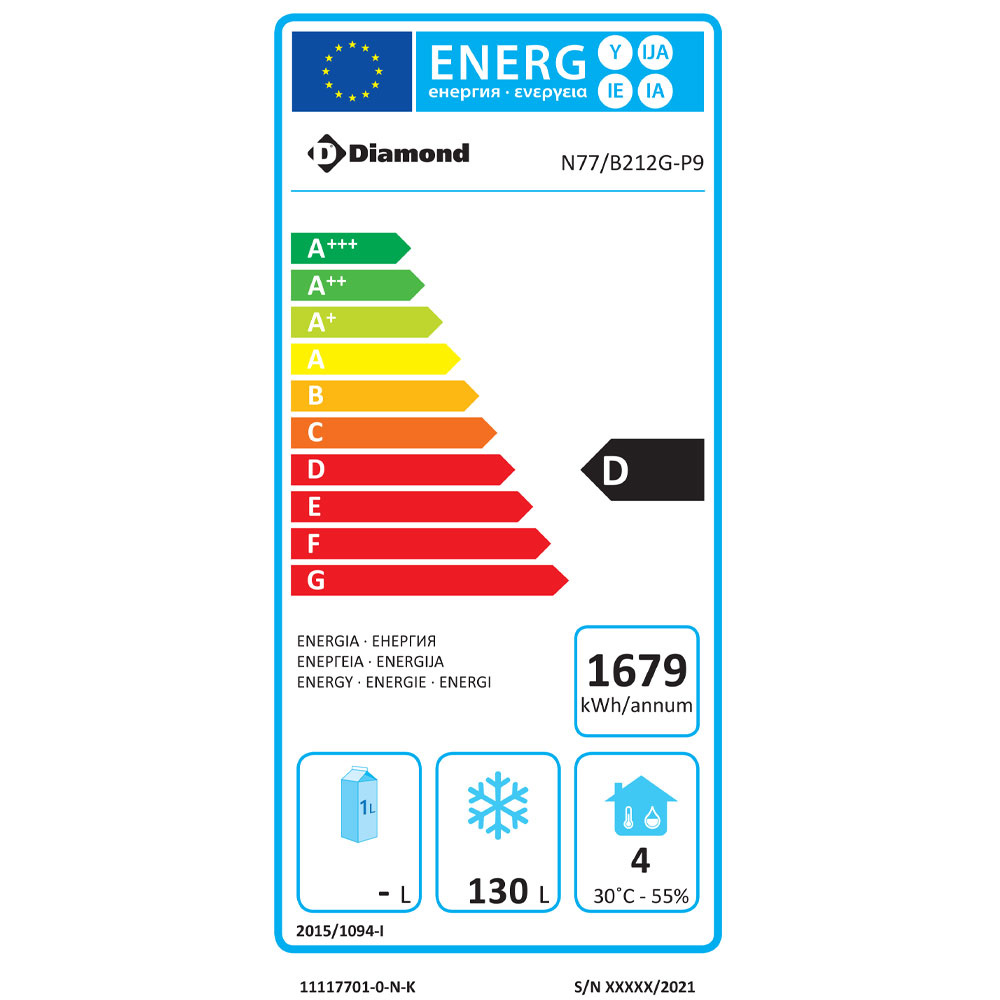 - Automatische ontdooiing van de verdamper, aantal ontdooiingen voorgeprogrammeerd in de fabriek (te wijzigen naar wens).