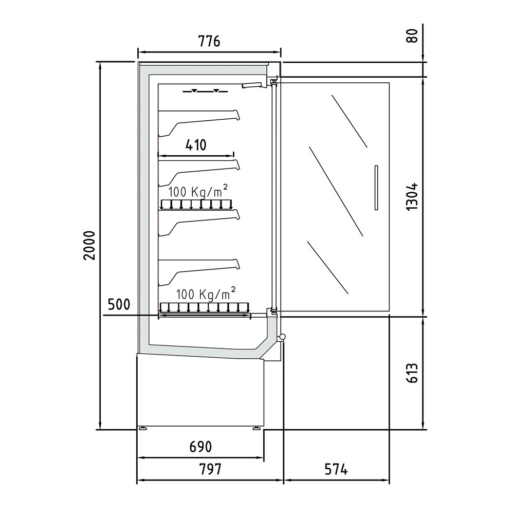 - Ontworpen voor zelfbedieningsverkoop van sandwiches, zuivelproducten, kaas, fruit, vleeswaren, dranken.