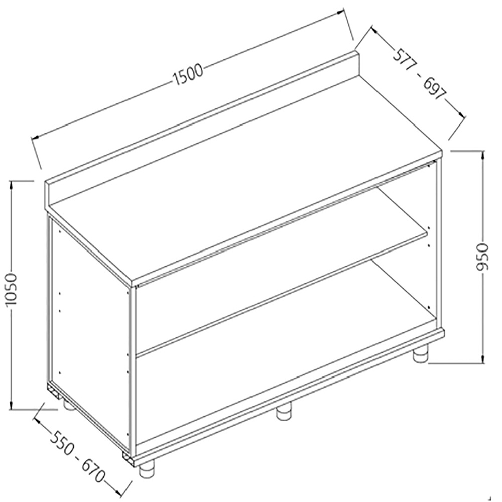 Neutraal "doorgeef" werktafelkasten met schuifdeuren