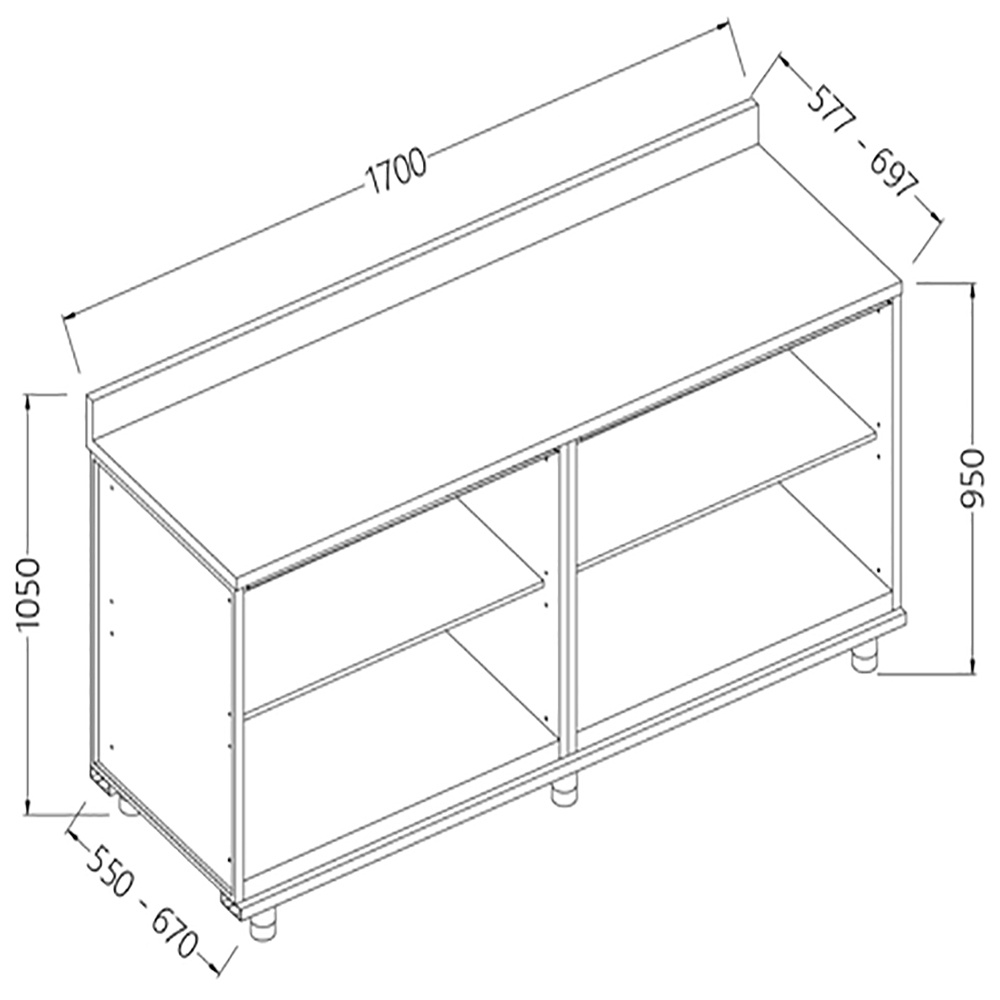 Neutraal "doorgeef" werktafelkasten met schuifdeuren