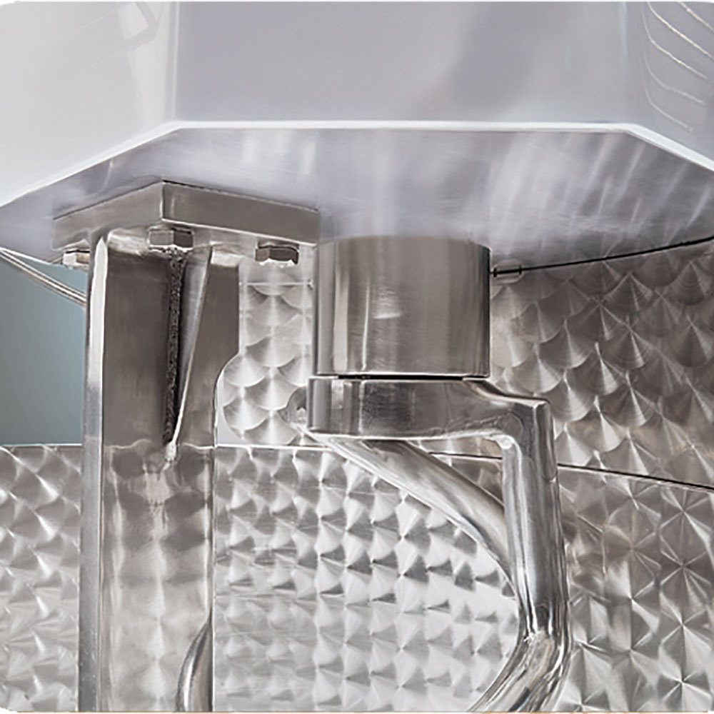 Met hun twee motoren, de impulsomwenteling en de draairichting van de kuip, voldoen de Diamond automatische kneders aan de behoeften van alle bakkerijen en banketbakkerijen die een zeer hoge productie hebben en soms zeer harde mengsels gebruiken. Ze zijn bijzonder robuust van ontwerp, zodat ze geschikt zijn voor alle zeer intensief gebruik zonder het deeg te verwarmen! Standaard 2 snelheden en 2 timers waarmee u de knedtijd voor elke snelheid kunt programmeren, zonder dat er een interventie nodig is!