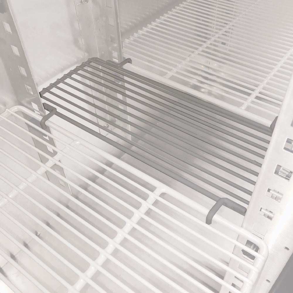 - 2 gerilsaniseerde roosters (450x430mm) per deur, regelbaar, 3 interieuropslag (staande flessen) vrije hoogte 737 mm