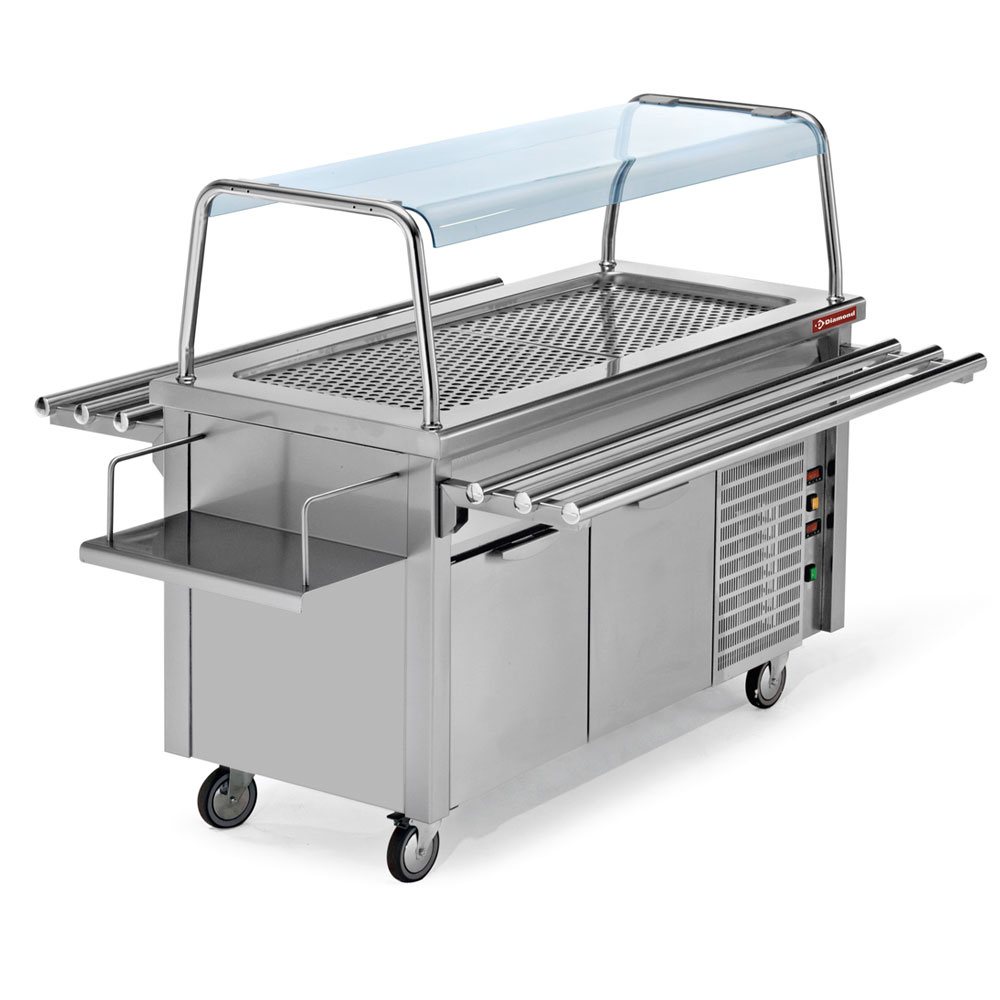Bovenste en middelste schap gebogen superstructuur, in gehard glas.