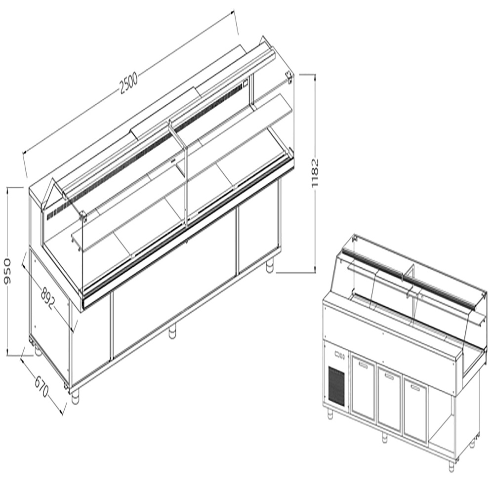 Geventileerde Gekoelde Vitrines Voor Snacks_lage Ruiten, Groep op Afstand, Zonder Reserve | VB25XR