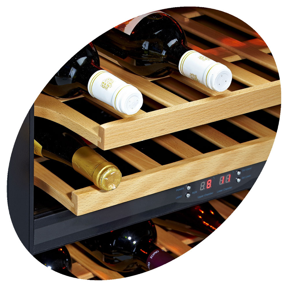 Wijnkast vitrine, geventileerd, 160 Lt., 2 T°, BLACK