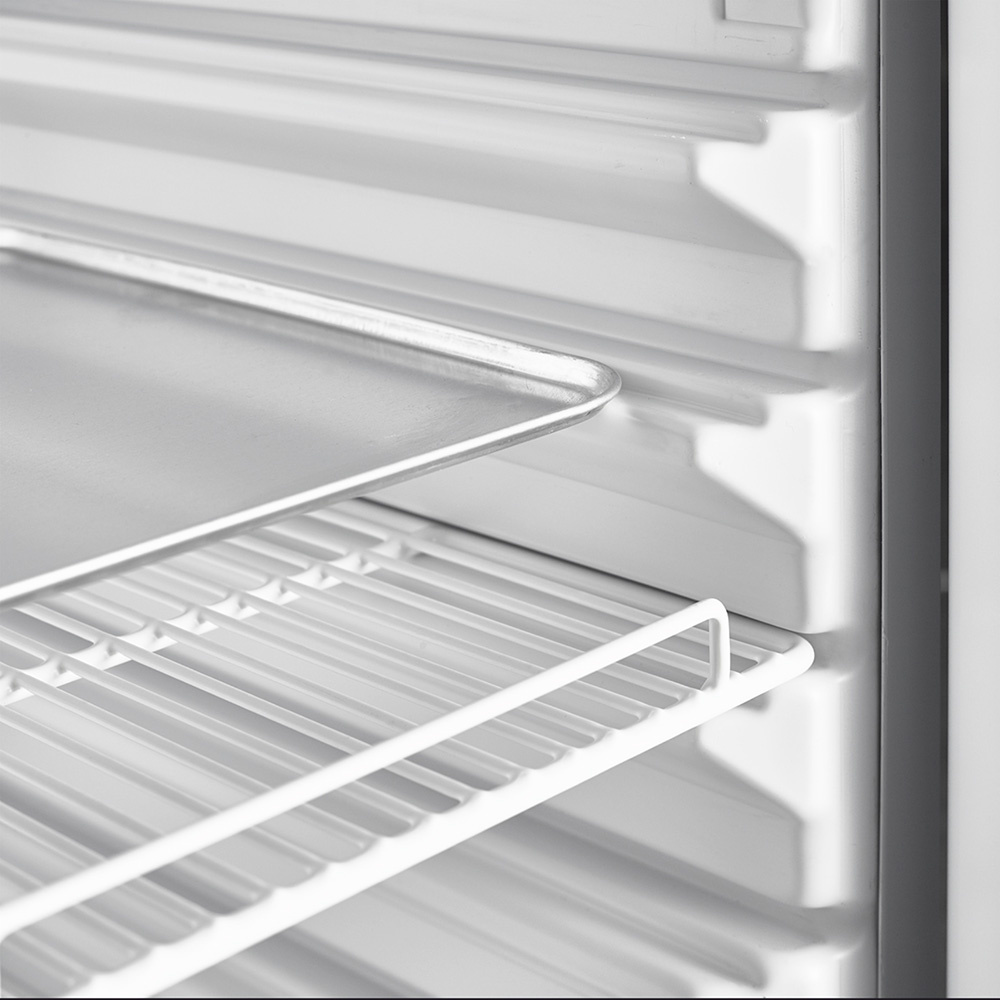- Geleverd met 4 verstelbare GN 2/1 roosters met plastic coating
