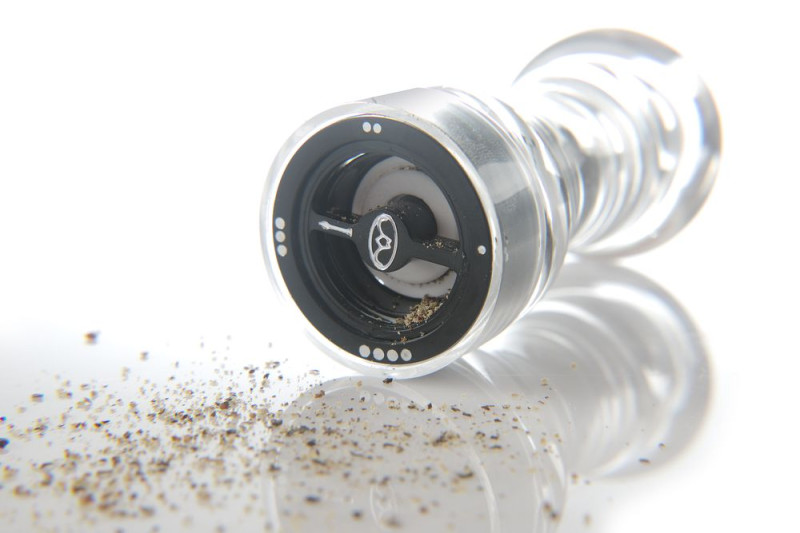 Gemaakt van transparant kunststof (PMMA). Duurzaam keramisch maalmechanisme, de precieze plaatsing van het maalwiel laat een ruimte tussen de tanden zodat slijtage verminderd wordt. Pepermolen voorzien van een uniek mechanisme voor het instellen van de maalgraad, instelbaar in 4 stappen van fijn tot grof. De dop is eenvoudig te verwijderen voor navullen, de spanning van de montageschroef heeft geen invloed op de maalgraad van de pepermolen.
