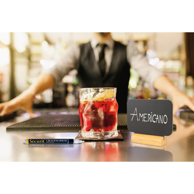 Ideaal voor miniberichten, speciale aanbiedingen of notities. Verwijder gewoon het dubbelzijdige oppervlak van de gelakte houten basis, neem je meegeleverde Securit Original witte krijtstift en ga aan de slag.