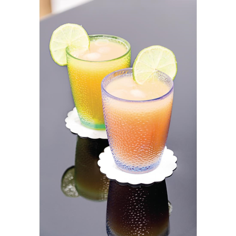 Deze stijlvolle en duurzame kunststof bekers voegen een vleugje kleur en klasse toe aan je tafelsetting, perfect voor allerlei verfrissende drankjes.