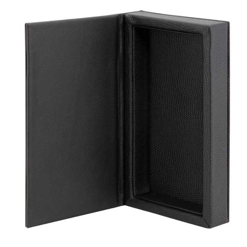 Trendy rekeningpresentator in lederen stijl in zwart, doosstijl 183x125x23mm