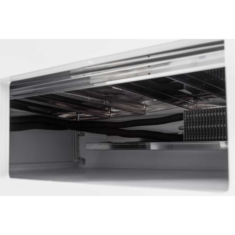 Recht gehard glas aan de voorkant beschermt de display en verbetert de hygiëne. Onderste scharniering voor eenvoudige reiniging