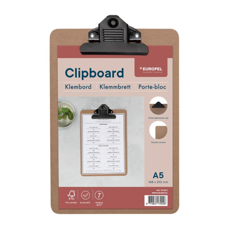Europel Klembord a5 Portret Hout 148 x 210 mm | HU469