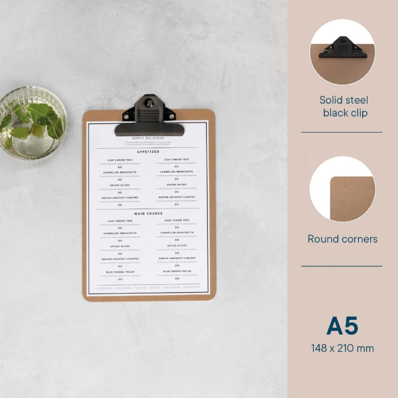 Veilige grip: het houten klembord is uitgerust met een 75mm zwarte metalen papierclip om belangrijke documenten op hun plaats te houden en netjes te organiseren.
