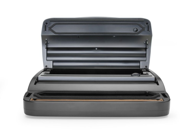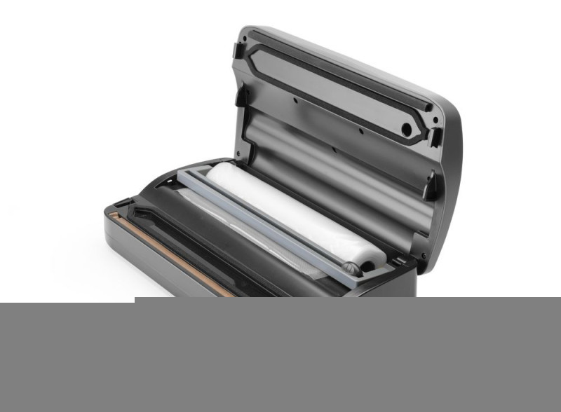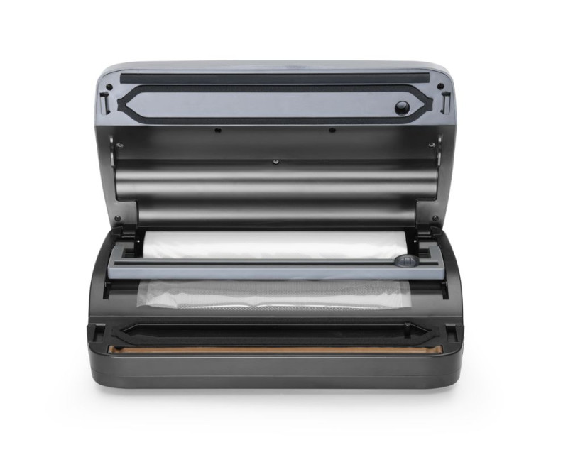 ABS-behuizing, speciaal ontwerp voorkomt dat vloeistof de pomp binnendringt. Ingebouwde container voor vacuümzakrol. Alleen voor vacuümzakken met reliëf met een max. breedte van 300 mm. Keuze uit twee sealtijden en twee niveaus van vacuümkracht. Pompcapaciteit: 6,5 l / min ± 15%. De breedte van de sealbalk is 2,2 mm. Gewicht: ongeveer 2 kg.