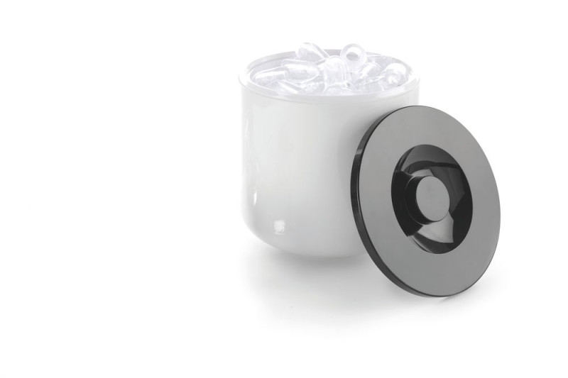 Ice cylinder with perforated bottom, black lid with handle. Made of polystyrene.