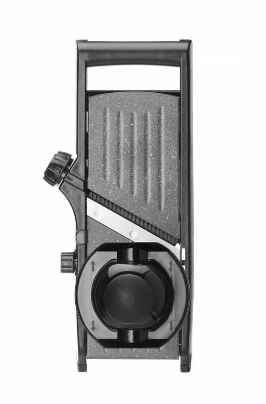 Met geïntegreerde mesjes voor 3 mm julienne en 13 mm dikke frietjes. Mogelijkheid om de julienne-messen te verwijderen voor reiniging, ontgrendelpositie afgedrukt op de knop.