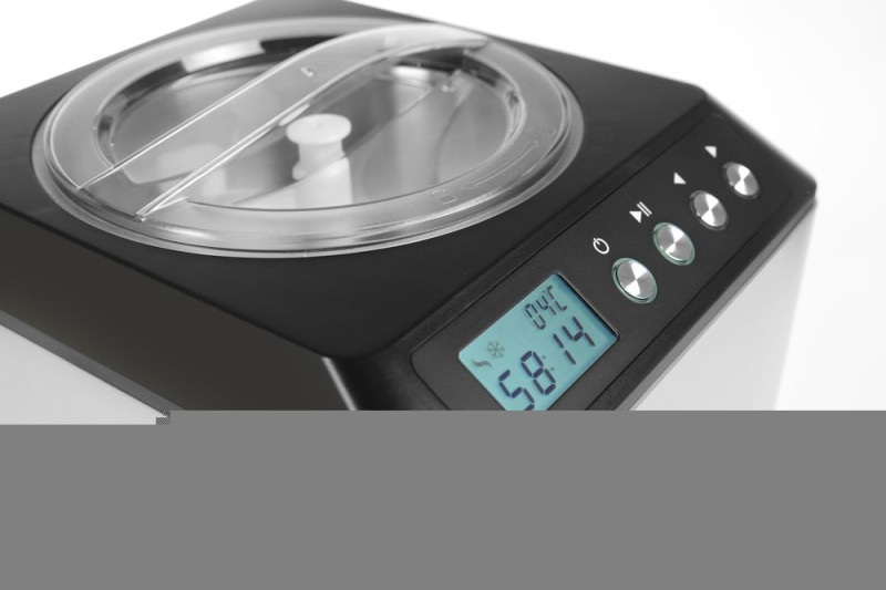 Ideaal voor het maken van roomijs, sorbets en yoghurtijs binnen 90 minuten. Roestvast stalen ijshouder met 2 Liter inhoud. Luchtgekoelde compressor met temperatuurbereik -10° tot -35°C. Koelhoud functie om tot twee uur na bereiding de consistentie van het ijs in stand te houden. Voor-koelen van ingrediënten is niet vereist. Groot digitaal scherm met achtergrondverlichting toont de bedrijfstijd, vriestemperatuur en de beweging van de mixer. Eenvoudig te plaatsen mengschoep van POM. Transparant deksel van polycarbonaat met “Twist-Lock” veiligheidssluiting. Maatbeker en lepel inbegrepen.