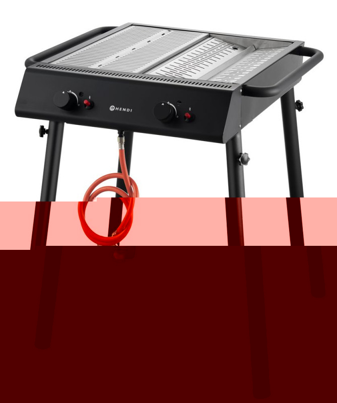 Inclusief thermokoppel en elektronische ontsteking, gasslang en drukregelaar. Geschikt voor propaangas. Grill oppervlakte 540x540 mm (2 roosters van 540x270 mm).