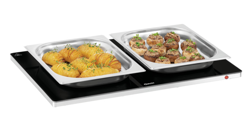 Extra vlakke warmhoudplaat voor buffet, catering en frontcooking. Het eten wordt warm gehouden en aantrekkelijk gepresenteerd om te serveren. Perfect geschikt voor containers in het 1/1 GN-formaat.