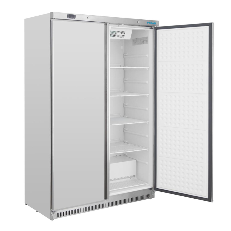De Polar C-Serie dubbeldeurs staande koelkast is een betrouwbare en gebruiksvriendelijke voedselopslagoplossing voor minder veeleisende omgevingen. Ontworpen voor capaciteit en gebruiksgemak, biedt de Polar koelkast een royale capaciteit van 744 liter naast acht stevige verstelbare planken, zodat u de binnenzijde kunt configureren om aan uw behoeften te voldoen. Binnenin zorgt krachtige geforceerde luchtkoeling ervoor dat de temperaturen in de gehele kast constant blijven, waarbij de temperaturen snel weer dalen nadat de deur is geopend. Het ABS-interieur is zeer duurzaam en gemakkelijk schoon te maken, terwijl de ingebouwde automatische ontdooiing zorgt voor behoud van prestaties en efficiëntie zonder rommelig handmatig ontdooien. Aan de buitenkant bieden de afsluitbare dubbele deuren beveiliging van de voorraad, en dankzij de handgrepen over de volledige lengte is de koelkast gemakkelijk toegankelijk wanneer dat nodig is. Geavanceerde 60mm isolatie levert indrukwekkende energiebesparingen op voor een koelkast van deze capaciteit. Het is ook gemakkelijk schoon te maken, met een sterke roestvrijstalen buitenkant en achterrollen die het positioneren van de koelkast eenvoudig maken.
